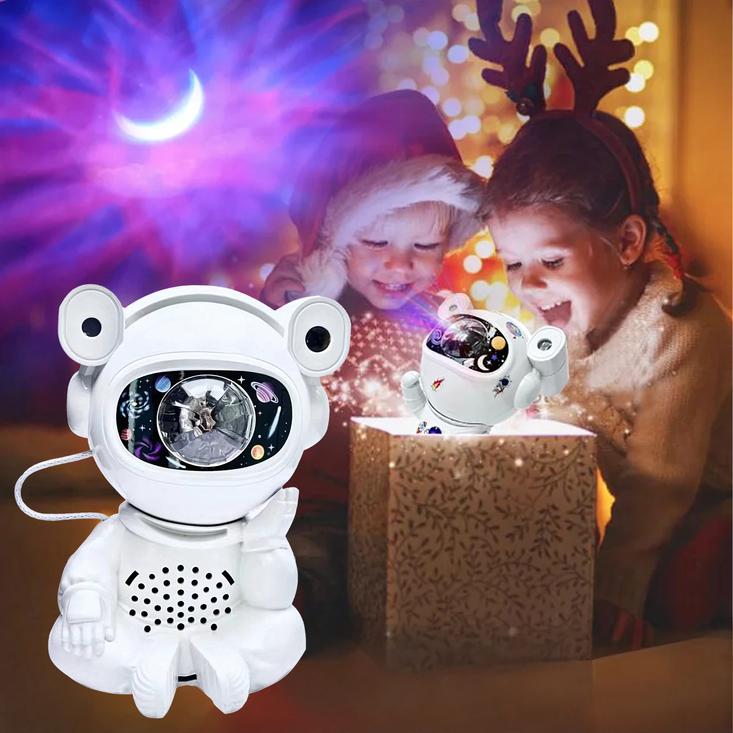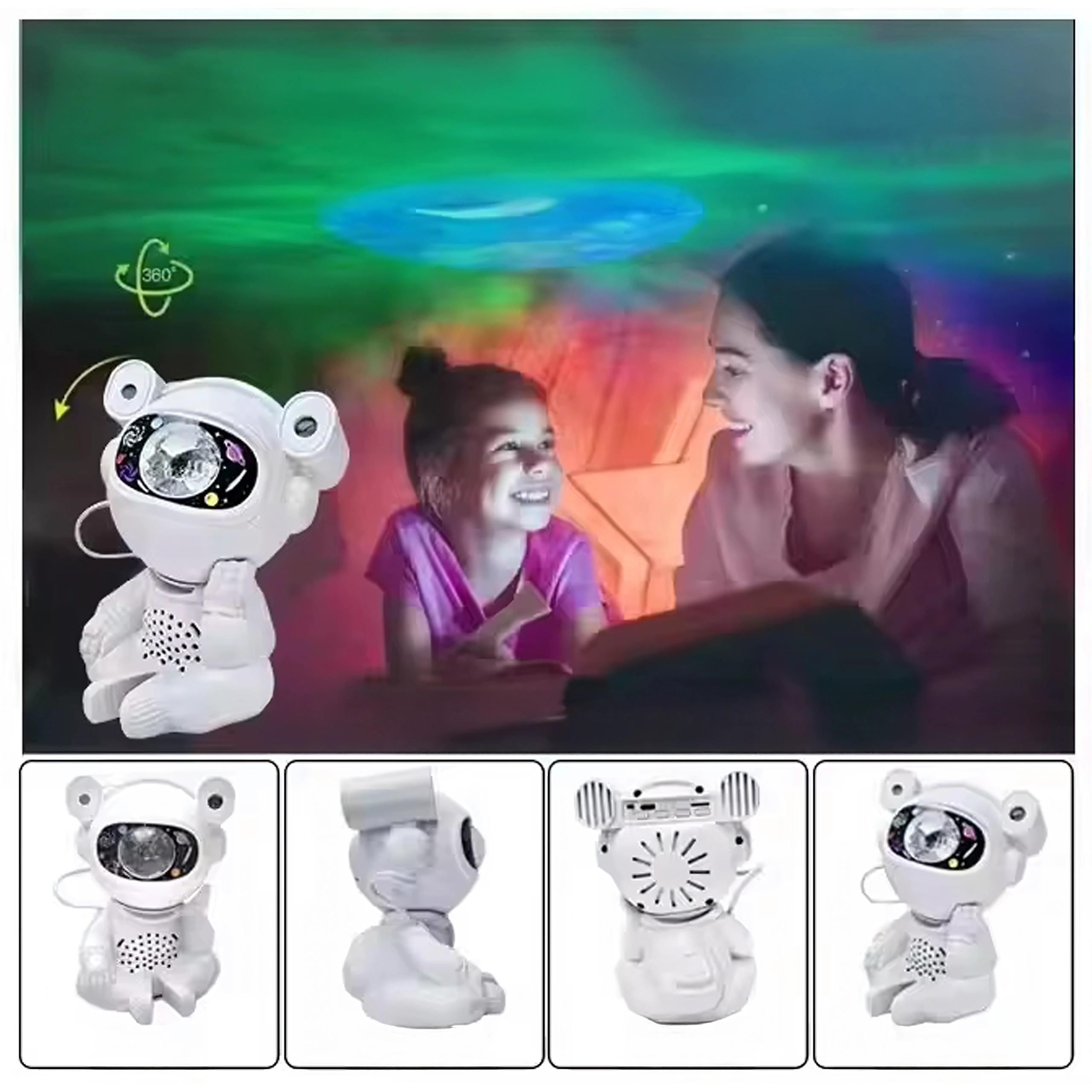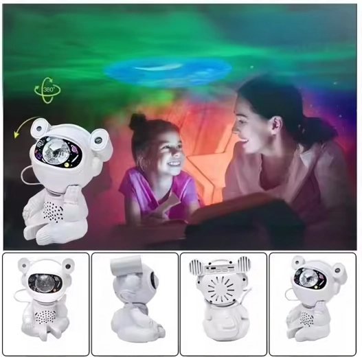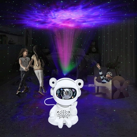 Odkryj spokojne zasypianie i kojącą projekcję gwiazd z lampą w kształcie astronauty z ruchomą głową. Projekcja tworzy na suficie i ścianach imponującą galaktykę gwiazd i mgławic, pobudzając dziecięcą wyobraźnię i budując przyjemną atmosferę do odpoczynku.