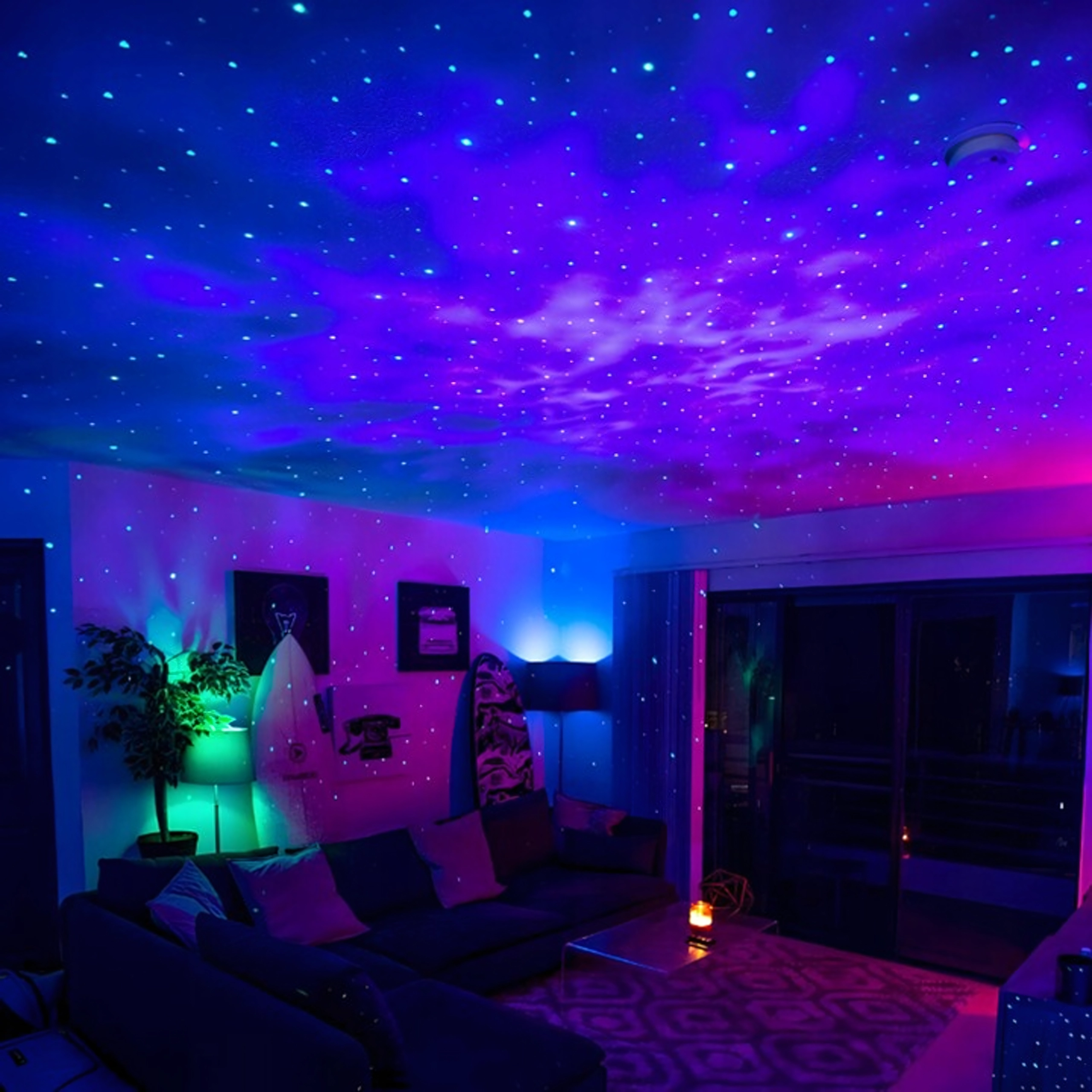 - 2 wzory projekcji i 6 trybów kolorystycznych dla urozmaiconego pokazu świetlnego.