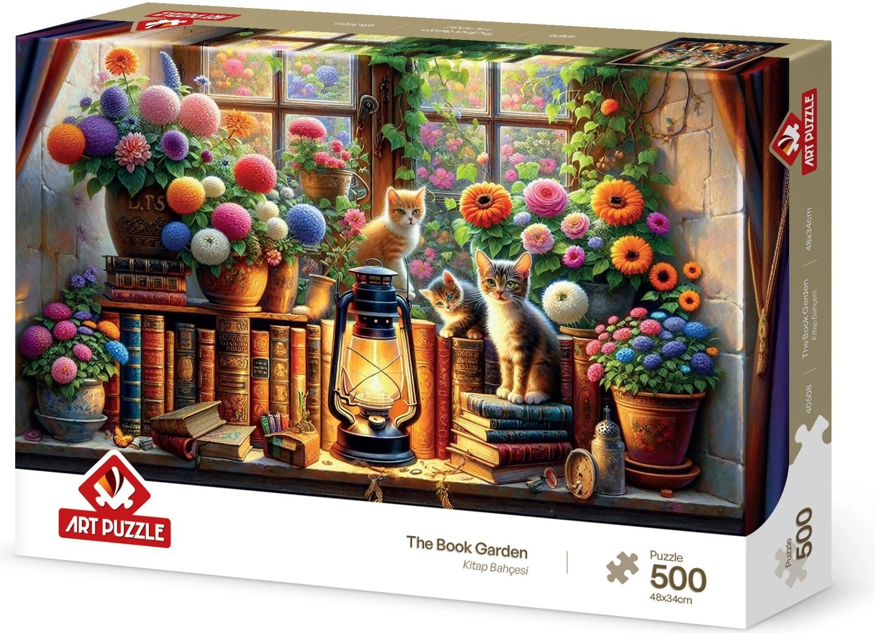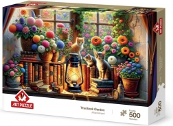 Odkryj magię literackiego świata z motywem puzzle Ogród książek. To wysokiej jakości puzzle składające się z 500 elementów oferuje relaks i zabawę dla całej rodziny, a po ułożeniu tworzy obraz o wymiarach 48 × 34 cm.