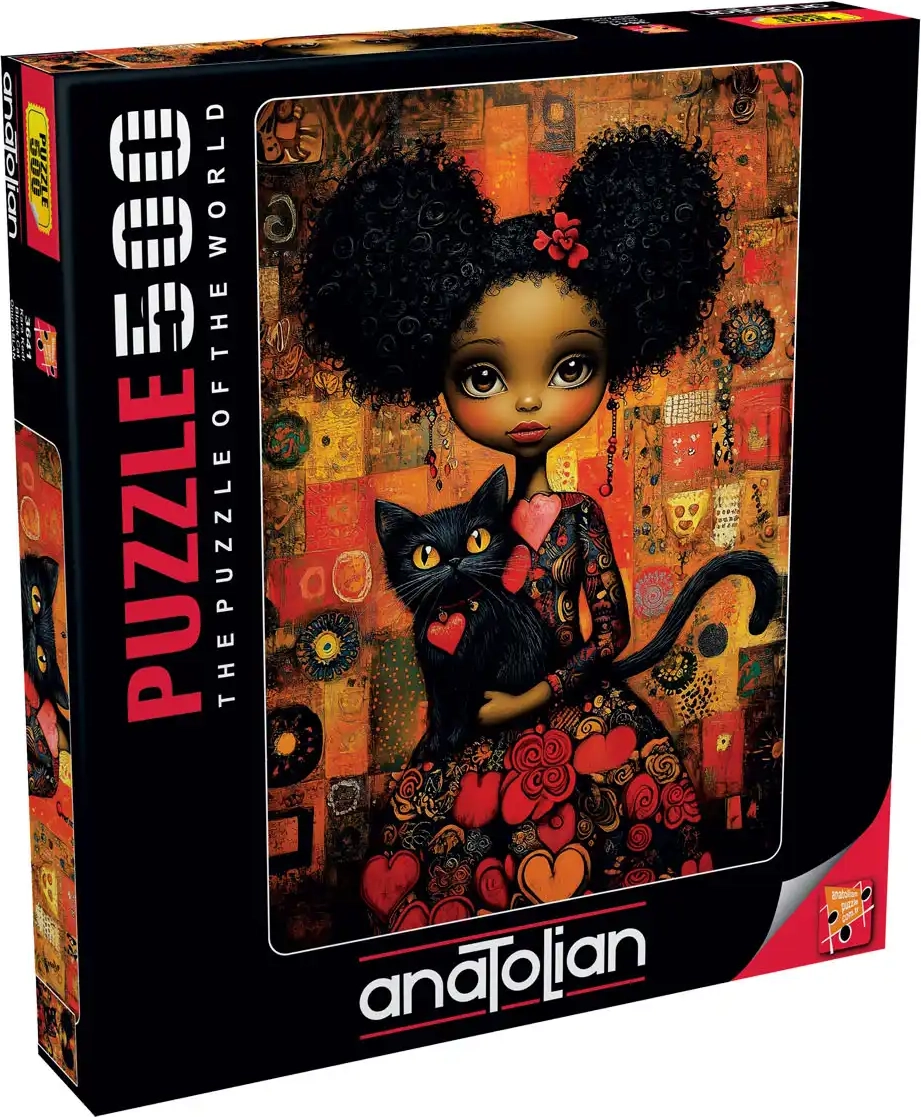 Ciesz się relaksem przy układaniu z eleganckim motywem czarnej kotki. To wysokiej jakości puzzle o 500 elementach oferuje przyjemne wyzwanie, ostry nadruk i wygodny format do domowej rozrywki.