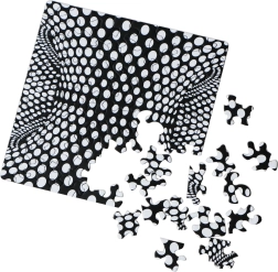 Puzzle Curiosi Shimmer: Iluzja III ucieszą każdego, kto kocha designerskie układanki. Oryginalny motyw z iluzjami optycznymi wyróżnia się od pierwszego spojrzenia, a dzięki nietypowym kształtom elementów zapewnia zabawę także bardziej doświadczonym układaczom.