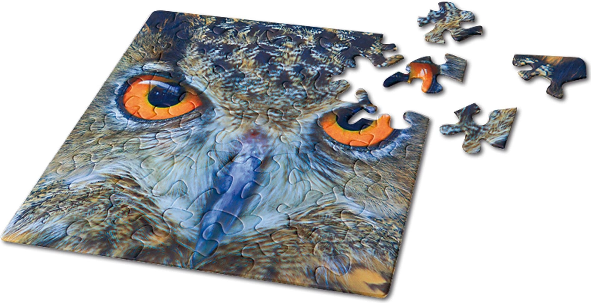 Puzzle CURIOSI Q Animal: Sowa ucieszą każdego, kto lubi pomysłowy design oraz krótkie, ale wciągające wyzwania. Dzięki oryginalnemu opracowaniu i niezwykłym kształtom elementów układanie jest zabawne i jednocześnie dynamiczne – idealne w podróży lub jako drobny upominek.
