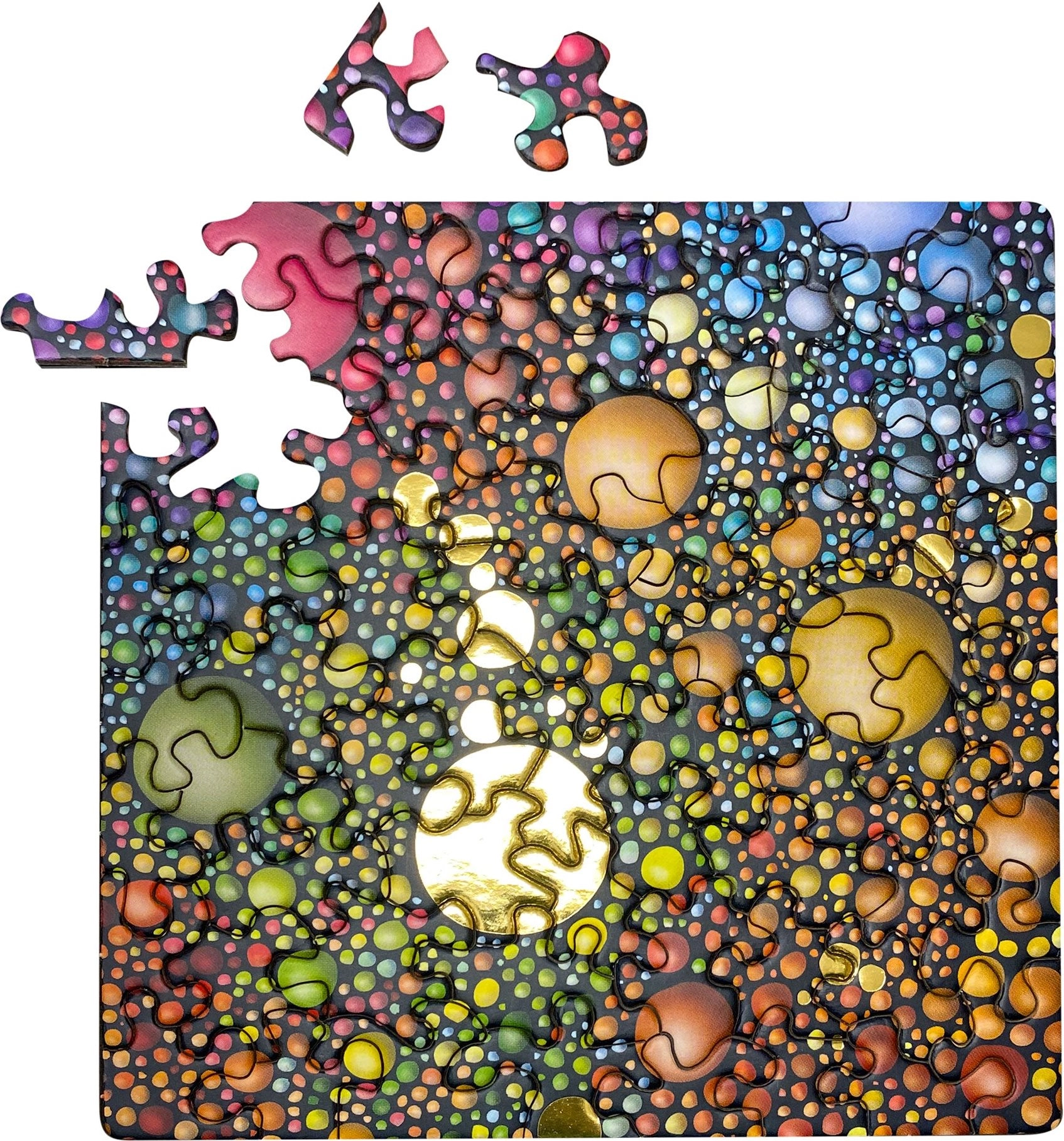 Kwadratowe puzzle Curiosi Q Gold wyróżniają się kompaktowym rozmiarem i efektownym wykonaniem ze złotą nutą. Dzięki niecodziennym kształtom elementów zapewniają przyjemne wyzwanie i dostarczają rozrywki miłośnikom designerskich puzzli oraz kolekcjonerom.