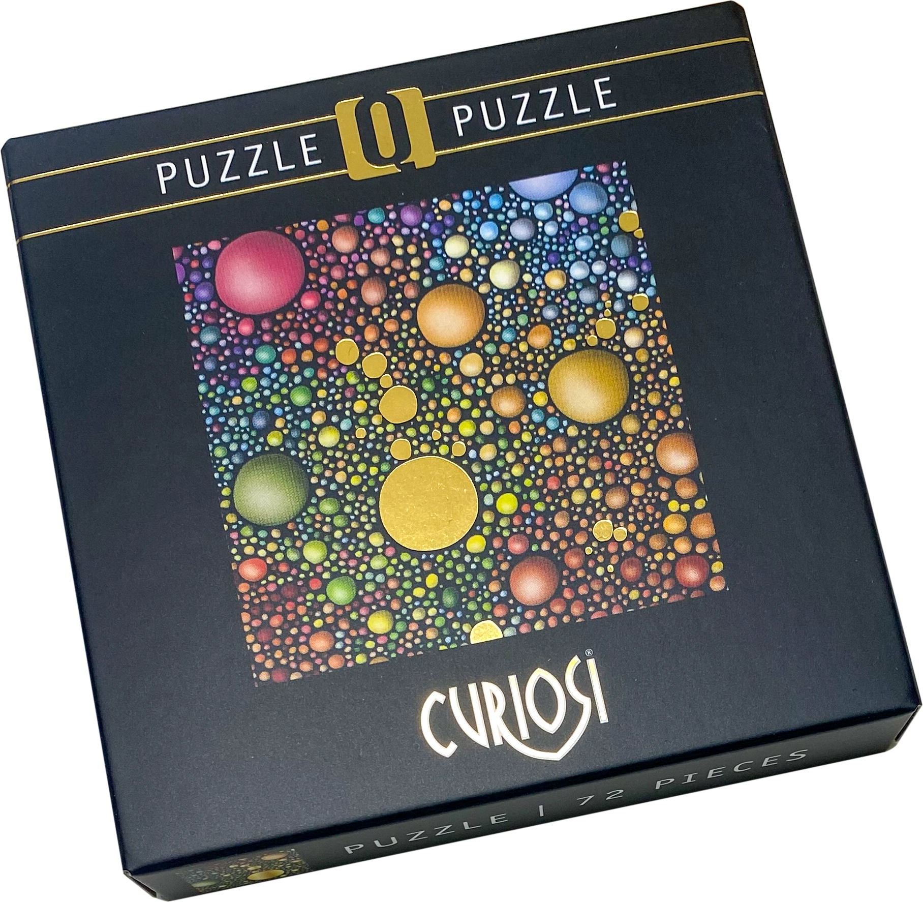 Odkryj stylowe kwadratowe puzzle Curiosi Q Gold z 72 elementami, które zachwycają oryginalnym designem, nietypowymi kształtami elementów oraz eleganckim złotym połyskiem. Idealne jako zabawny i designerski prezent oraz na chwile relaksu.