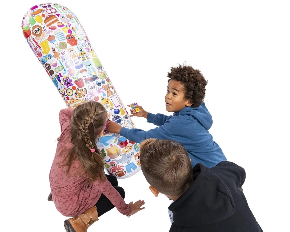 Najważniejszym elementem gry jest miękki, obciążony wodą „kiwak” z dziesiątkami kolorowych ikon. Wytrzymały, bezpieczny i zachęcający do dynamicznej zabawy bez obaw o uderzenia.