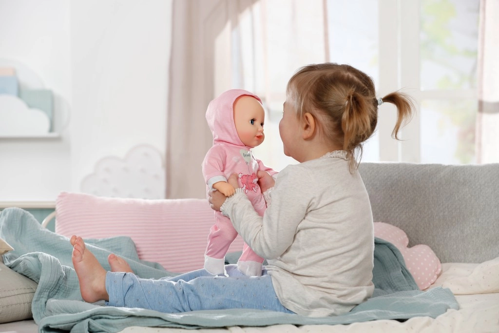 Ta lalka wspiera rozwój empatii, małej motoryki i wyobraźni. Jest idealna do odgrywania ról opieki nad niemowlęciem – karmienia, uspokajania i usypiania ze smoczkiem. Wszystko jest intuicyjne i bezpieczne dla małych rączek.