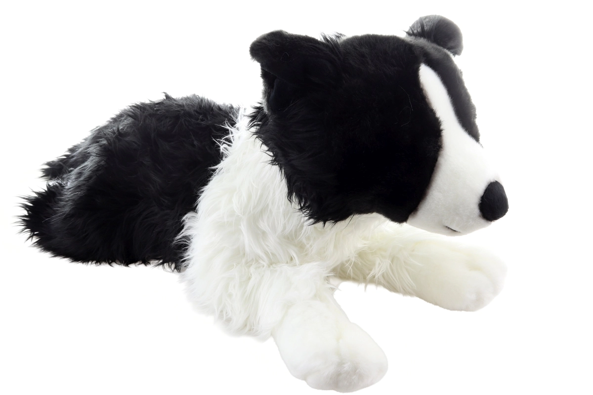 Uroczy pluszowy pies rasy border collie o długości 70 cm to idealny, mięciutki towarzysz dla dzieci i miłośników zwierząt. Oferuje wyjątkowo miękkie futerko, realistyczne wykonanie oraz wygodną leżącą pozycję do przytulania. Odpowiedni od 0+.
