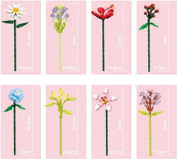 - 8 kwiatów do zbudowania: stokrotka, niebieska kalla, hibiskus, dziurawiec, niebieska róża, żółta kalla, czosnek ozdobny, bez (lilak).