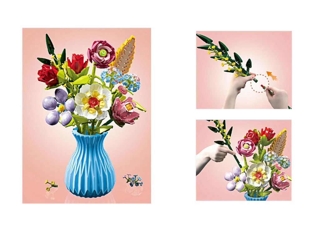 Stwórz nigdy niemarniejący bukiet dzięki tej kreatywnej zabawce zawierającej 691 elementów i 8 gatunków kwiatów do dołączonego wazonu. Idealna jako dekoracja wnętrza i prezent; szczegółowe obrazkowe instrukcje do każdego kwiatu ułatwiają składanie.