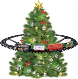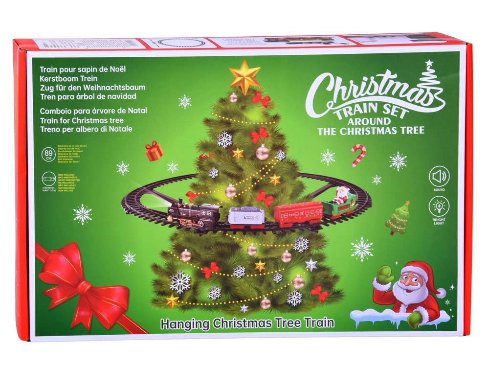 Rozświetl święta magicznym dodatkiem: interaktywnym świątecznym pociągiem, który okrąża twoją choinkę. Oferuje dwa poziomy prędkości jazdy, świecące przednie LED, dźwięk parowej lokomotywy oraz świąteczną melodię. Lokomotywa ciągnie trzy tematyczne wagoniki, a cały zestaw łatwo mocuje się do drzewa za pomocą stabilnych podpór.