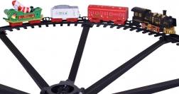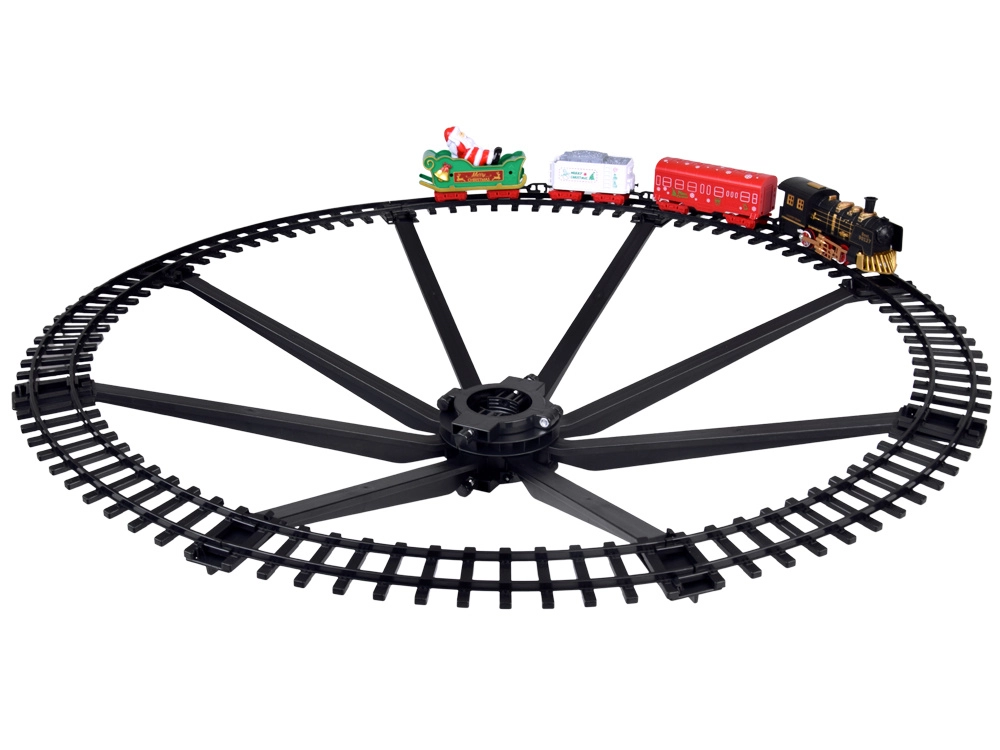 Ten dekoracyjny pociąg stworzy wokół twojej choinki ruchomą, rozświetloną światełkami scenę jak z świątecznego filmu. Lokomotywa ze światłem i dźwiękiem jeździ po okrągłym torze, a wagoniki z napisami Merry Christmas i saniami z MIKOŁAJEM dopełniają świąteczny nastrój. Dzięki 2 prędkościom dopasujesz tempo jazdy od spokojnego kołysania po żwawszy obieg.