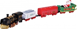 Zestaw tworzą czarna lokomotywa i trzy różne wagony: biały węglarka z napisem Merry Christmas, czerwony wagon z ozdobami oraz zielone sanie z Mikołajem.