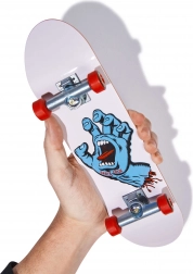 Tech Deck handboard SANTA CRUZ maxi 27 cm oferuje autentyczne wrażenia skateboardingu w praktycznym, większym formacie. Dzięki wstępnie zmontowanej desce z grafiką Screaming Hand, metalowym truckom i wytrzymałym kółkom możesz cieszyć się realistycznym wykonywaniem trików oraz stabilnym prowadzeniem.