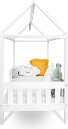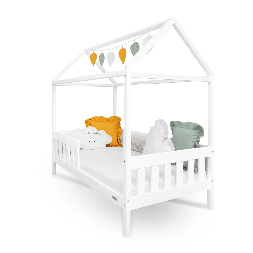 Stylowe dziecięce łóżko w kształcie domku NEW BABY Castello oferuje bezpieczeństwo, wygodę i figlarny design na codzienny sen i zabawę. Lite drewno sosnowe, wodorozcieńczalne lakiery bezpieczne dla dzieci, ochronna barierka przeciw upadkowi oraz wysokiej jakości stelaż listwowy zapewniający zdrowe podparcie kręgosłupa czynią z tego łóżka doskonały wybór do każdego dziecięcego pokoju.