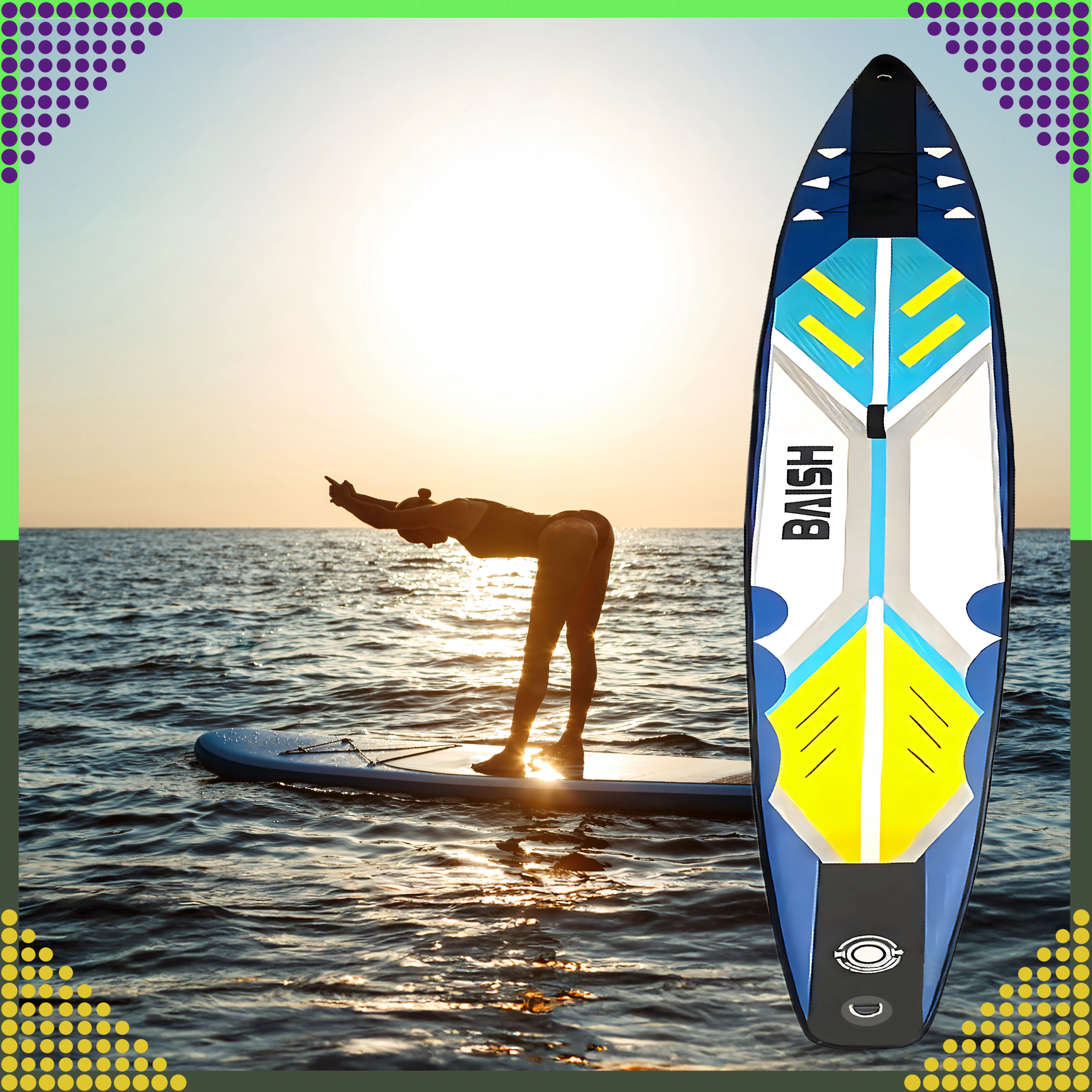 Odkryj wolność na wodzie z nadmuchiwaną deską SUP o wymiarach 420 × 58 × 12 cm, która oferuje wysoką stabilność, łatwe manewrowanie oraz komfortową, antypoślizgową powierzchnię EVA. Dzięki wytrzymałej konstrukcji kompozytowej z PVC wzmocnionym włóknem szklanym, zaworowi wysokociśnieniowemu i niskiej masie jest idealna na długie wycieczki i rekreacyjne pływanie. W zestawie praktyczne akcesoria dla wygodnego użytkowania.