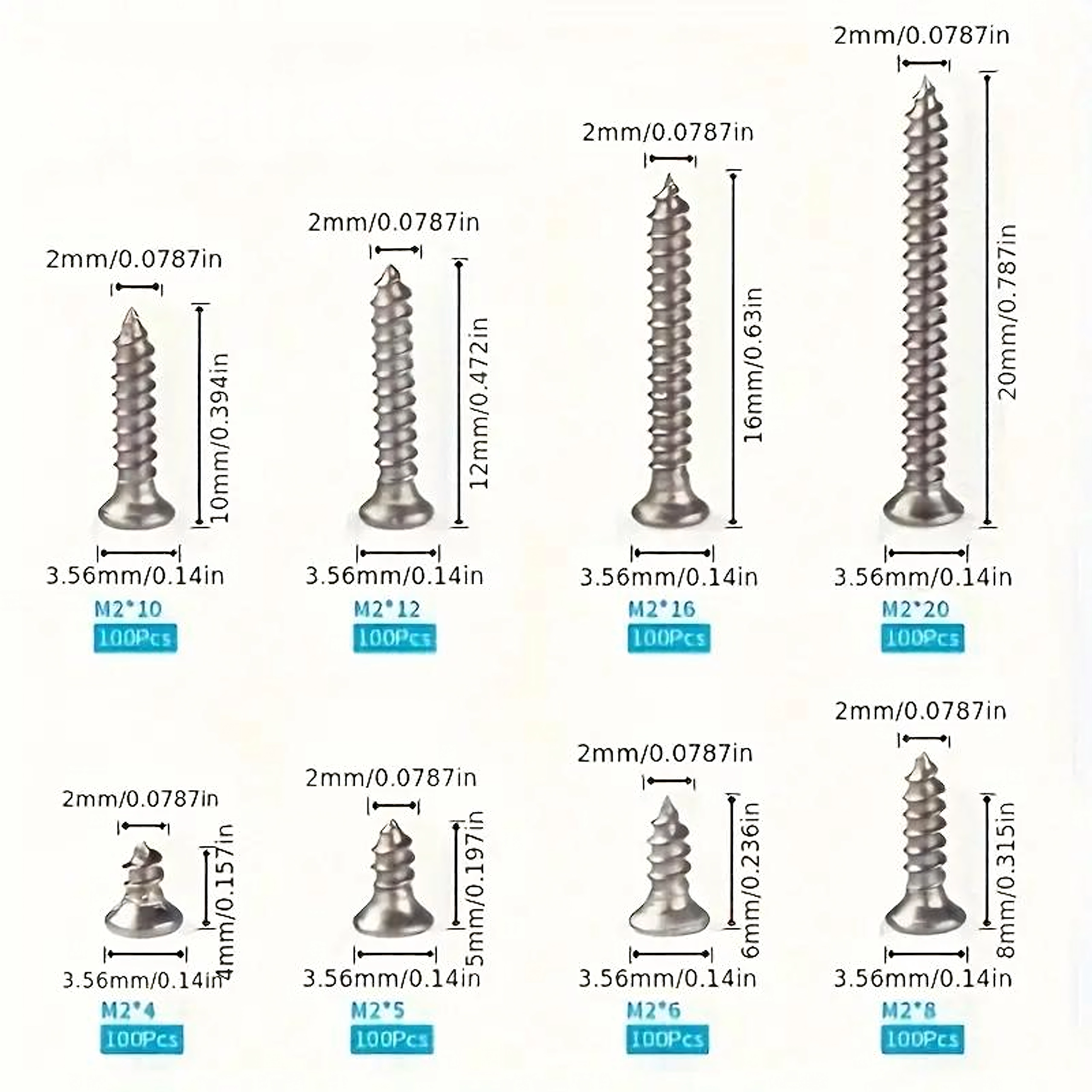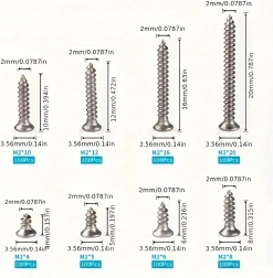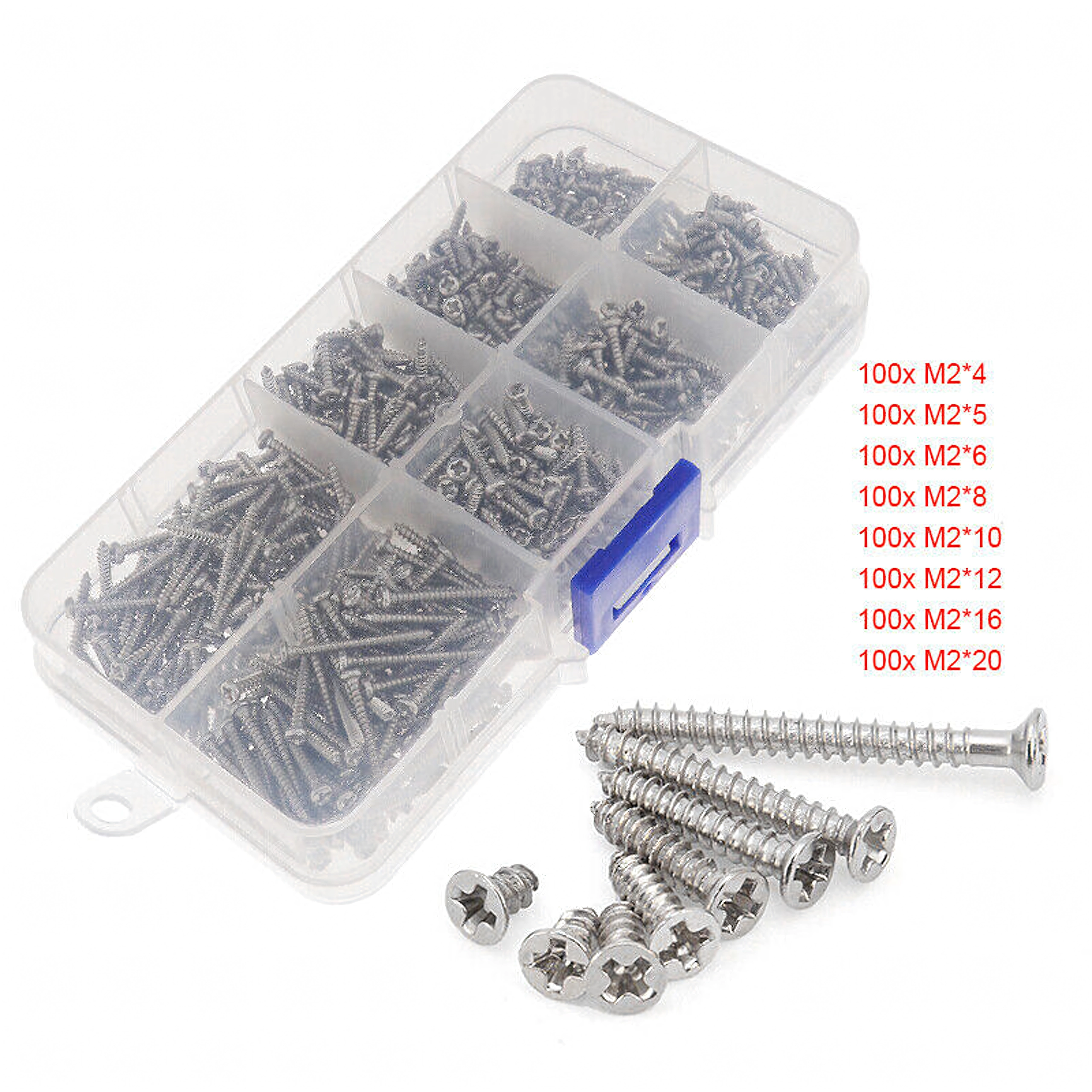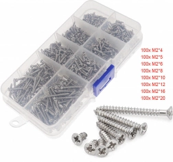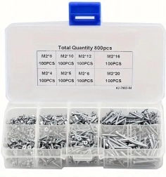 Zestaw uniwersalnych śrub M2 z niklowanej stali, 800 szt.