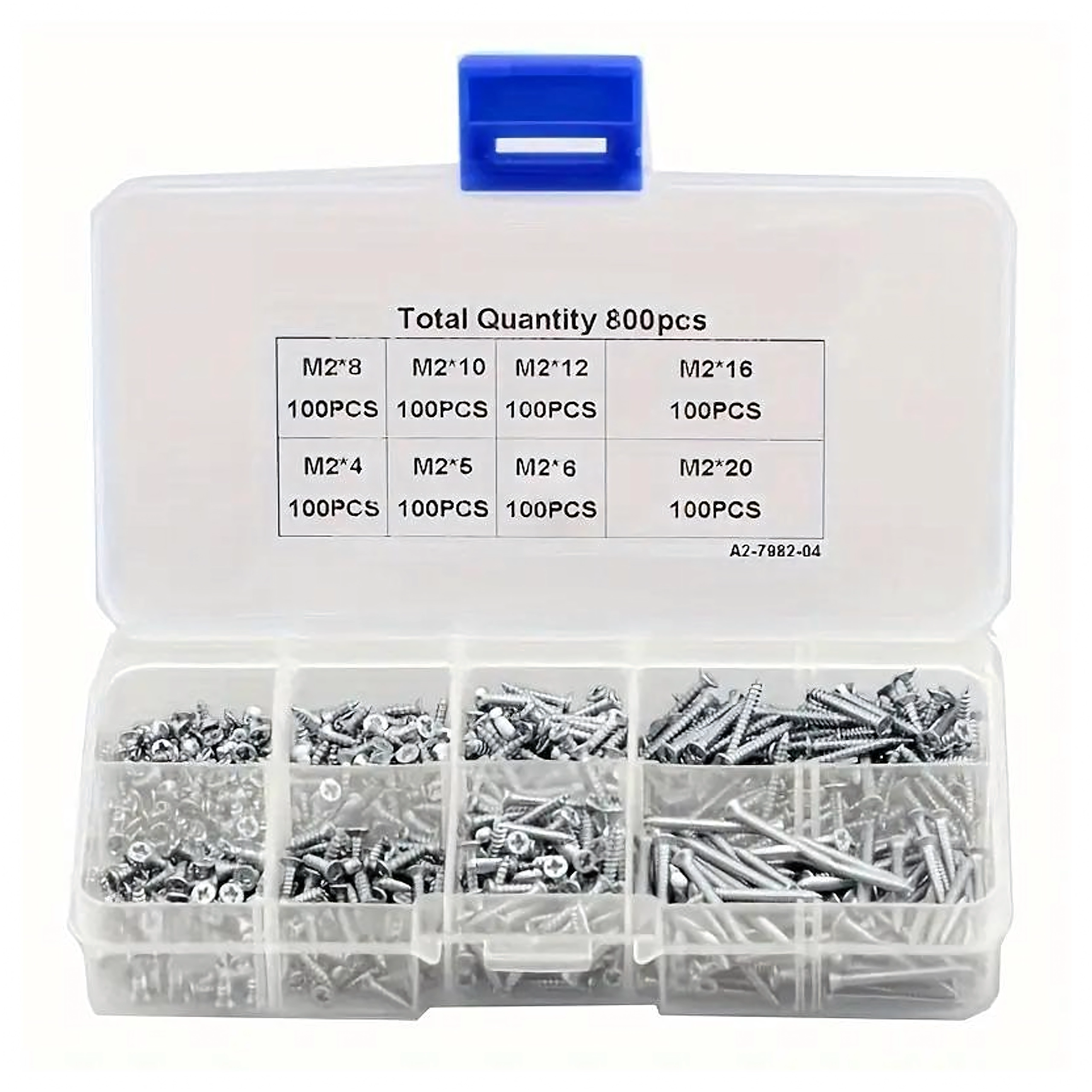 Praktyczny zestaw M2 zawiera 800 sztuk uniwersalnych śrub z niklowanej stali węglowej w 8 długościach 4–20 mm. Idealne do drewna, elektroniki, plastiku i cienkiego metalu. Przejrzysty organizer utrzymuje wszystko posegregowane i zawsze pod ręką.