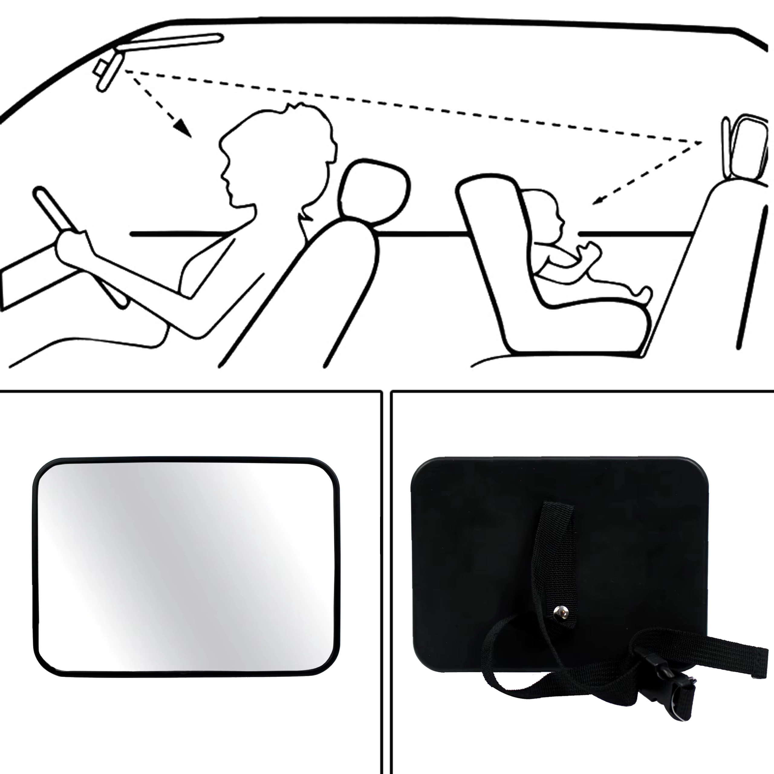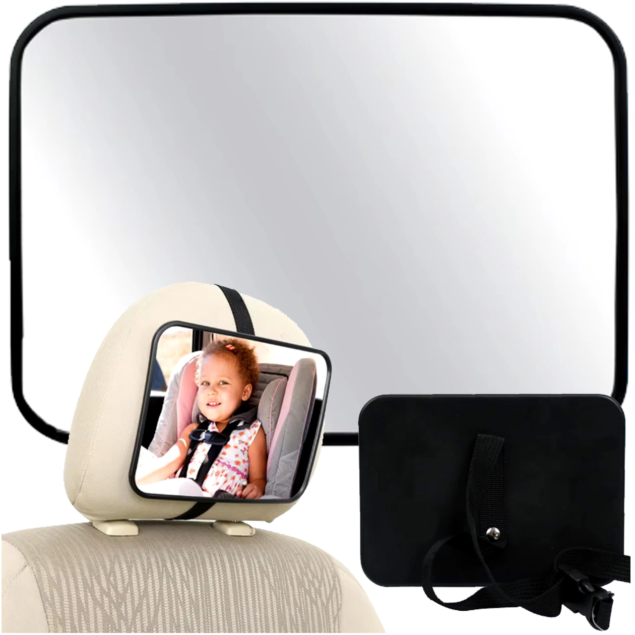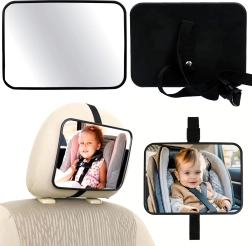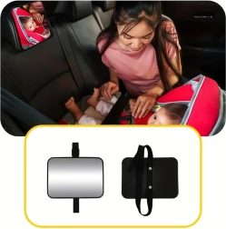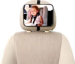 Koniec z odwracaniem się do tyłu w trakcie jazdy. Lusterko na zagłówek zapewnia wyraźny i szeroki widok na dziecko w foteliku montowanym tyłem do kierunku jazdy. Dzięki uniwersalnemu mocowaniu i regulowanemu przegubowi łatwo ustawisz idealny kąt, aby mieć małego pasażera zawsze na oku.