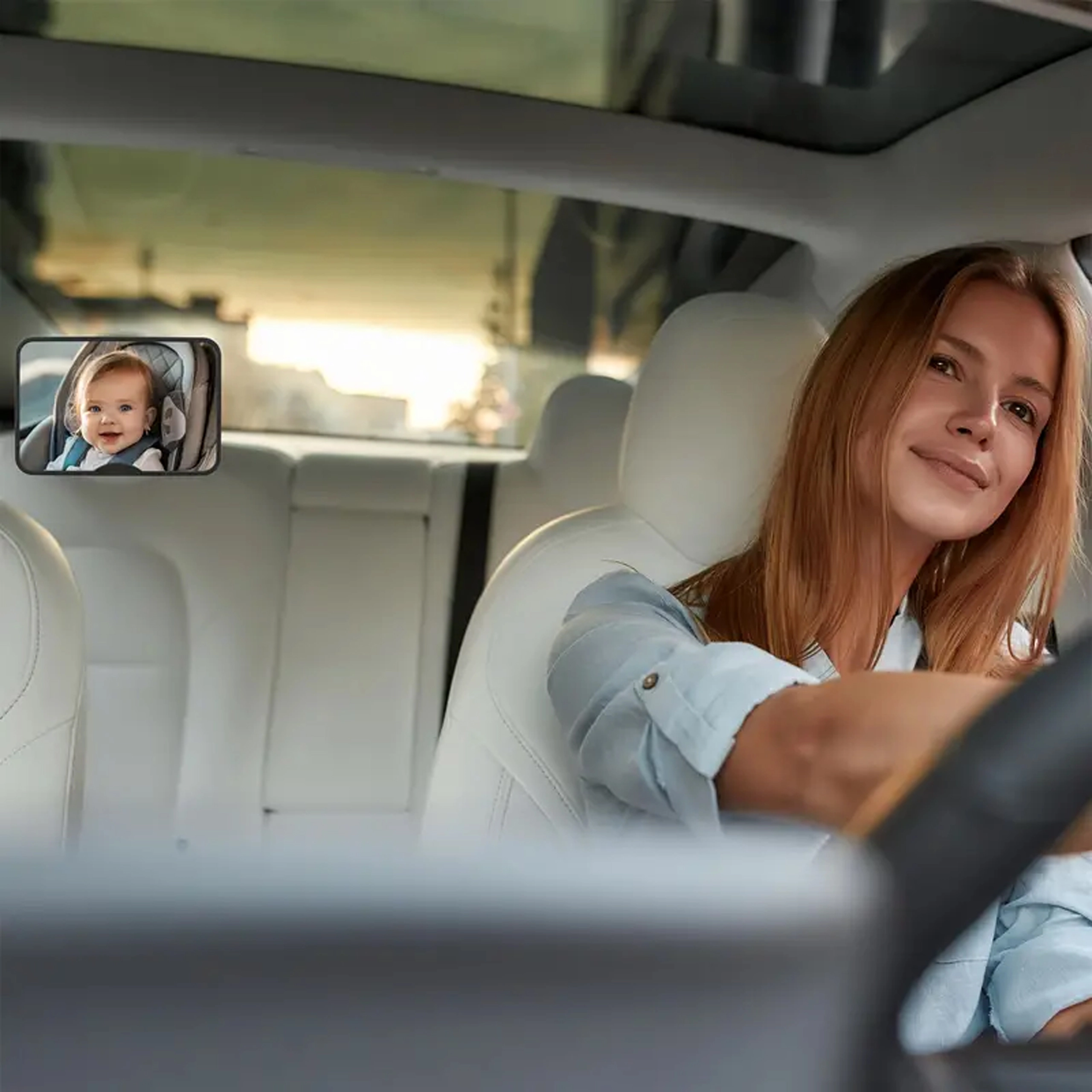 Wypukła i wystarczająco duża powierzchnia lusterka 18,8 × 13,5 cm zapewnia szerokie pole widzenia, dzięki czemu od razu widzisz swoje dziecko.