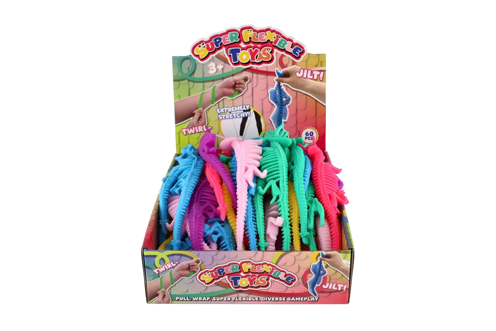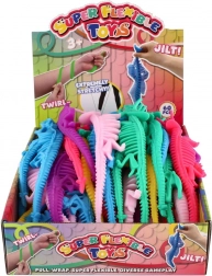 Kolorowa antystresowa zabawka w kształcie szkieletu dinozaura z przyjemnie miękkiego silikonu, idealna do ściskania, rozciągania i wyciszenia w stresie. Długość 22 cm, dostępna w 6 intensywnych kolorach, świetna dla dzieci i dorosłych jako fidget do rozładowania napięcia.