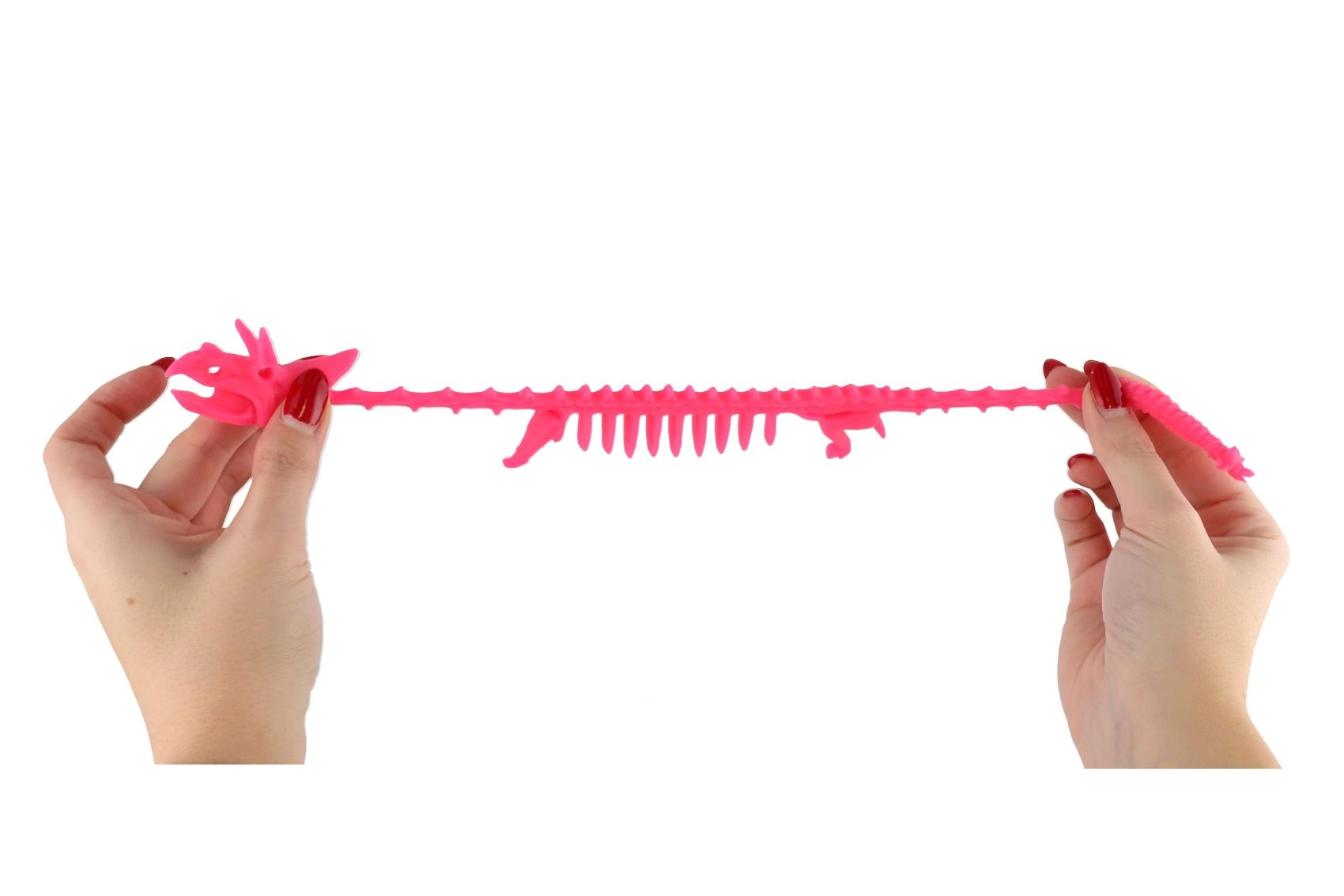 Ten rozciągany szkielet dinozaura to idealna pomoc antystresowa na codzienne chwile relaksu. Miękki i elastyczny silikon pozwala zabawkę ściskać, rozciągać i wyginać bez obaw o uszkodzenie, co pomaga rozładować napięcie i poprawić koncentrację.