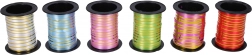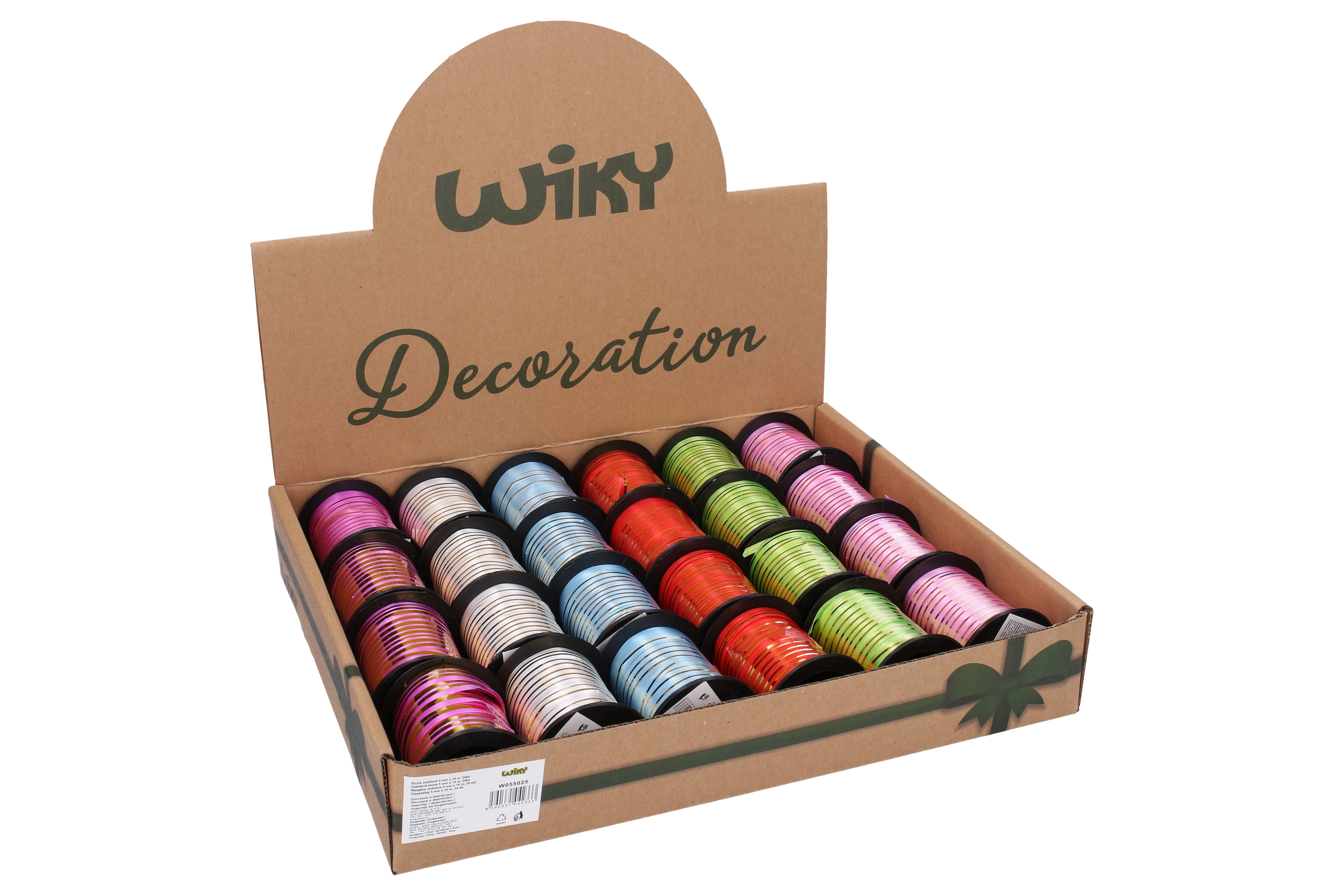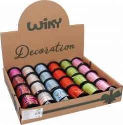 Wybierz spośród 6 atrakcyjnych kolorów: fioletowy, biały, niebieski, czerwony, zielony i różowy. Wstążka łatwo łączy się z innymi materiałami i nadaje się do rękodzieła, scrapbookingu i aranżacji. Dostępna także w korzystnym display boxie po 24 sztuki dla sklepów i wydarzeń.