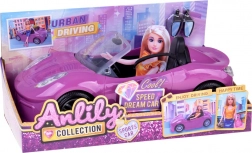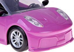 Elegancki kabriolet w dziewczęcym fioletowym wydaniu to idealny dodatek do świata zabawy lalkami. Dzięki otwartemu dachowi sadzanie lalek jest łatwe, a jazda w słońcu jeszcze przyjemniejsza. Wnętrze zachwyca obracającą się kierownicą, naklejkami przyrządów na desce oraz regulowanymi pasami – wszystko dla jeszcze bardziej realistycznych wrażeń.