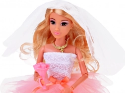 Lalka świetnie nadaje się do zabawy wyobraźniowej, rozwija małą motorykę i kreatywność. Długie, miękkie blond włosy zachęcają do czesania i tworzenia eleganckich fryzur, a dodatki takie jak bukiet, naszyjnik i buty na obcasie dopełniają cały strój.
