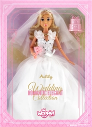 Zanurz się w świecie elegancji i romantyzmu z lalką–panną młodą Lily. Piękna panna młoda w białej, tiulowej spódnicy z ozdobnym gorsetem i delikatnym welonem zachwyca dopracowanymi detalami. W dłoni trzyma uroczy bukiet róż, a jej długie, jasne włosy kuszą do czesania i stylizowania.