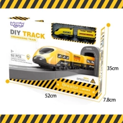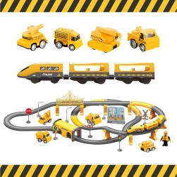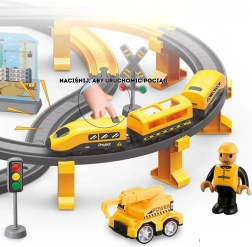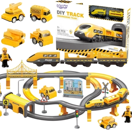 Dzięki 92 elementom dzieci mogą dowolnie zmieniać układ torów i projektować nowe pętle. Magnetyczne sprzęgi ułatwiają łączenie dwóch wagonów, a dołączony sprzęt budowlany, figurka pracownika oraz peron z budynkiem dworca tworzą żywą scenę. Zestaw wspiera motorykę małą, myślenie logiczne, kreatywność i samodzielność.