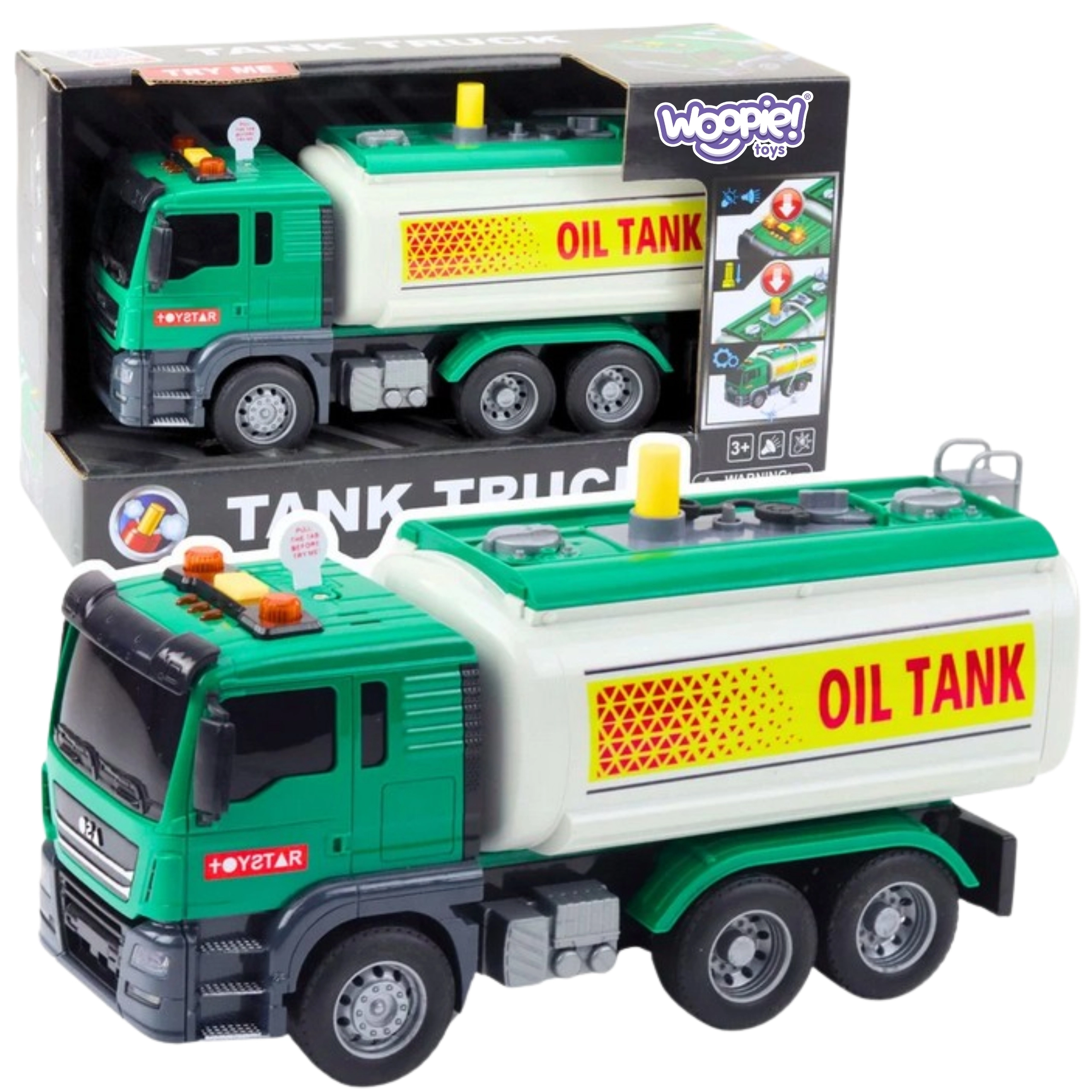 Interaktywna cysterna na wodę marki Woopie zachwyci każdego małego kierowcę. Oferuje realne pompowanie wody za pomocą zbiornika, pompki i elastycznego węża, efekty świetlne i dźwiękowe oraz solidną konstrukcję z wysokiej jakości plastiku. Świetna zabawka dla dzieci od 3 lat, wspierająca wyobraźnię, koordynację i zabawy w odgrywanie ról.