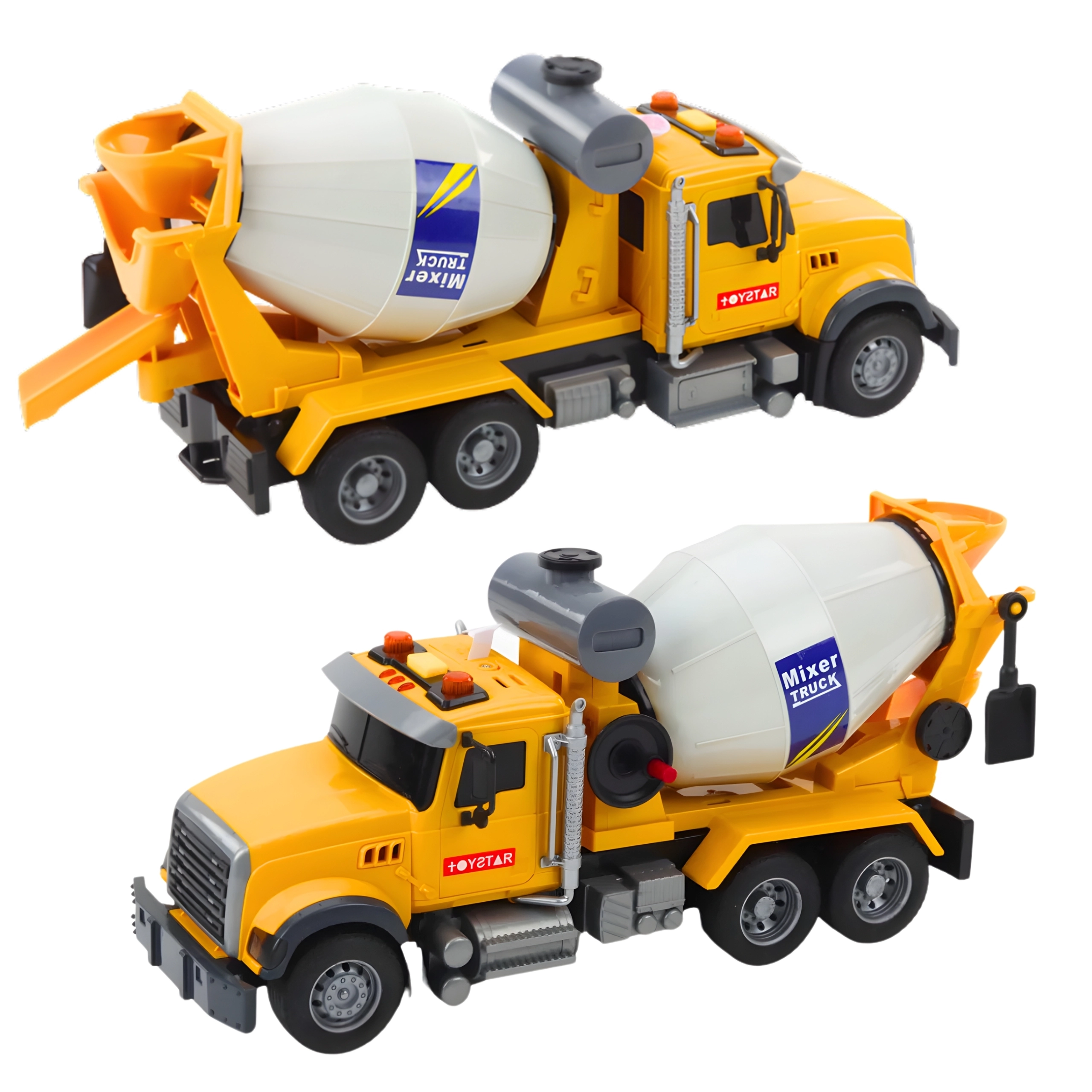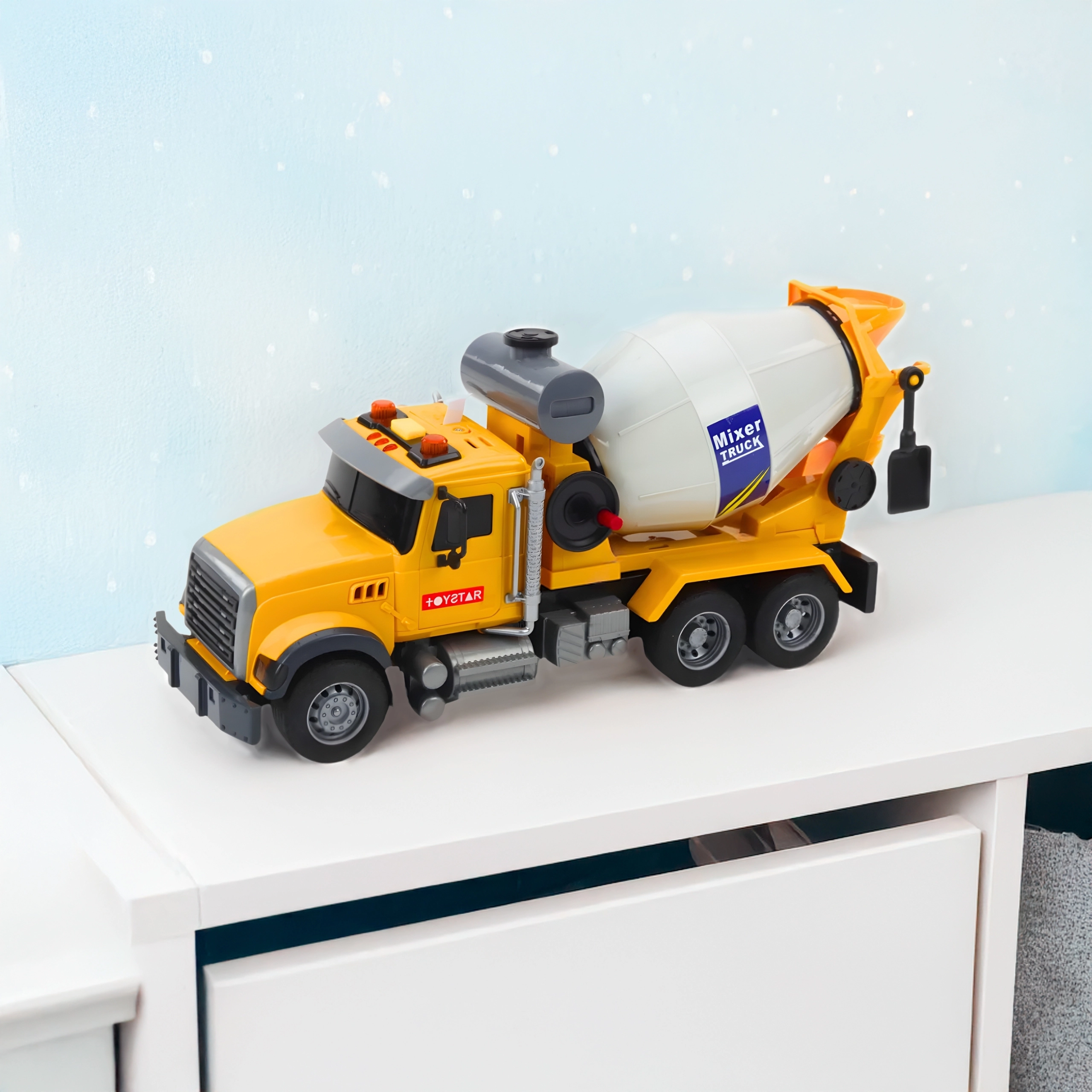 - Realistyczna, pełna akcji zabawa – ręczne obracanie bębna, światła i dźwięki (klakson, silnik, cofanie)