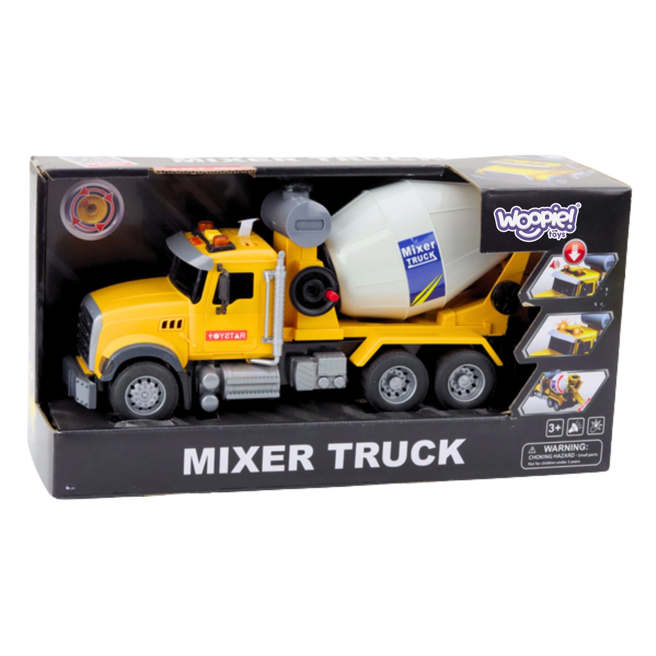 Dziecięca betoniarka WOOPIE ucieszy małych budowniczych autentycznym wyglądem i funkcjami. Obrotowy bęben mieszający działa jak w prawdziwej maszynie, a świetlne lampy ostrzegawcze i efekty dźwiękowe dostarczają realistycznych wrażeń z zabawy. Wyrazisty żółty kolor przyciąga uwagę, a wytrzymały plastik gwarantuje bezpieczeństwo nawet przy codziennym użytkowaniu.
