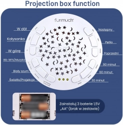 Projektor światła (gwiazdy i księżyce), pozytywka/uspokajacz