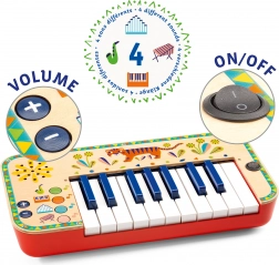 Odkryj radość z muzyki z tym kolorowym drewnianym syntezatorem marki DJECO. Idealny do pierwszych muzycznych prób, rozwija rytm, motorykę i kreatywność, a przy tym świetnie prezentuje się w pokoju dziecięcym.