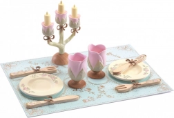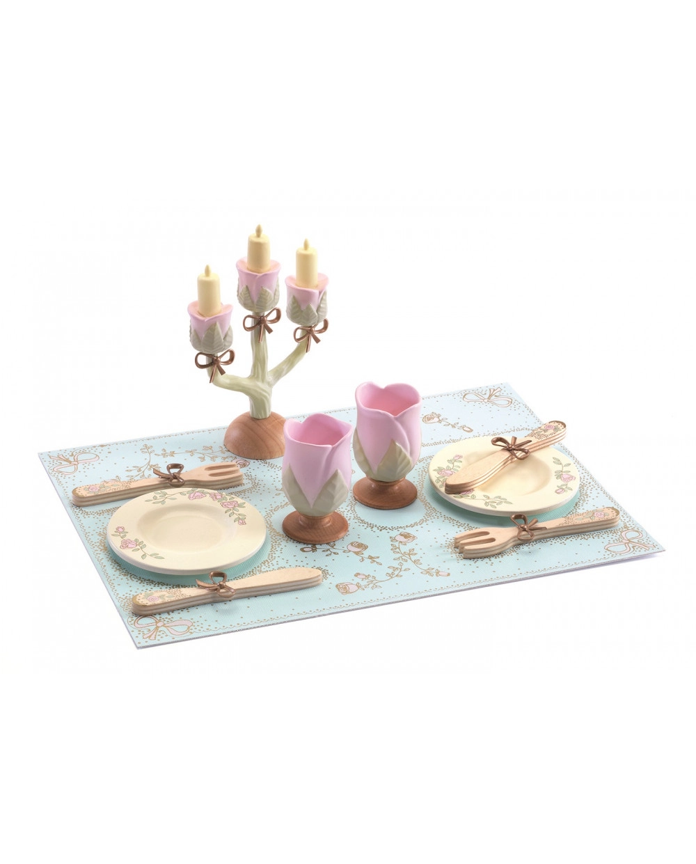 Ten malowany, drewniany zestaw DJECO zamieni każdą dziecięcą kuchnię w królewską jadalnię. Dzieci mogą ćwiczyć nakrywanie do stołu, uprzejmość i współpracę, a jednocześnie rozwijać motorykę małą i fantazję. Delikatne, księżniczkowe motywy oraz staranne wykończenie czynią z tego zestawu piękny prezent.