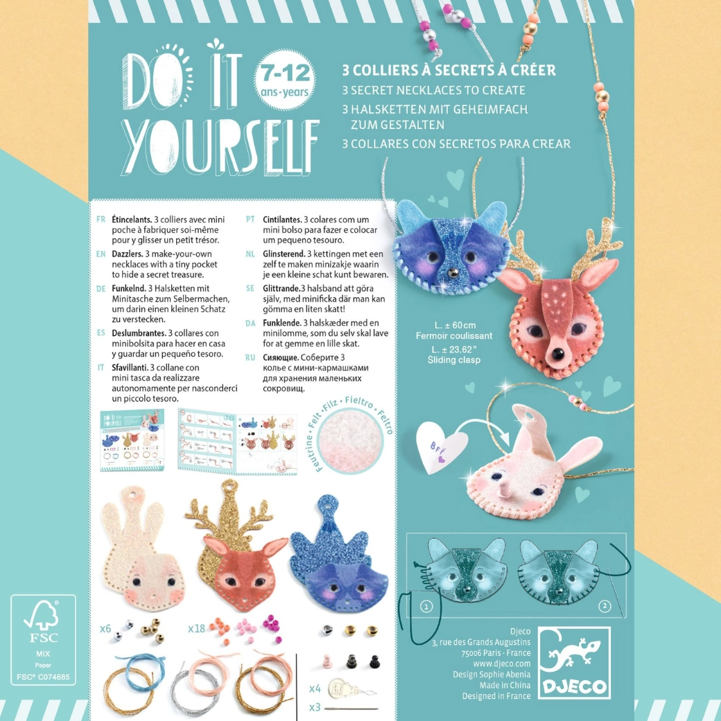 Ten zestaw DIY zawiera wszystko, czego potrzeba do wykonania trzech delikatnych naszyjników ze zwierzątkami. Dzięki przejrzystej ilustrowanej instrukcji dzieci krok po kroku skleją i zszyją mięciutkie filcowe zawieszki, ozdobią je koralikami i nawleką na sznureczek. Efektem są oryginalne dodatki, które świetnie sprawdzą się jako prezent dla przyjaciół lub jako wyjątkowa ozdoba na co dzień.