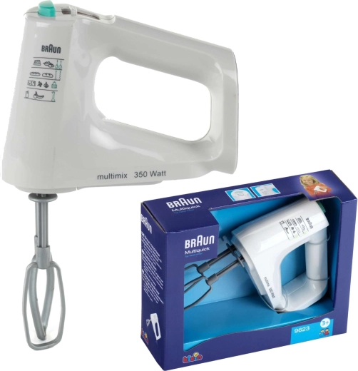Ten dziecięcy mikser ręczny w białym kolorze jest wierną kopią prawdziwego urządzenia BRAUN. Duże, dostosowane do dzieci przyciski ułatwiają obsługę, a realistyczne efekty ruchowe i dźwiękowe wspierają wyobraźnię i zabawę w kucharza.