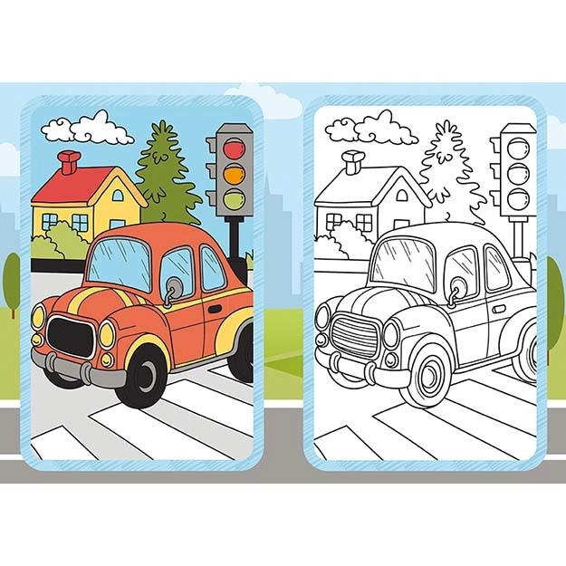 Zabawne kolorowanki z motywami środków transportu ucieszą małych artystów od 3 lat. Zawierają 9 czarno-białych obrazków do kolorowania oraz 9 kolorowych wzorów dla łatwej inspiracji. Praktyczny format 210 × 150 mm mieści się w plecaku i jest idealny w podróży.