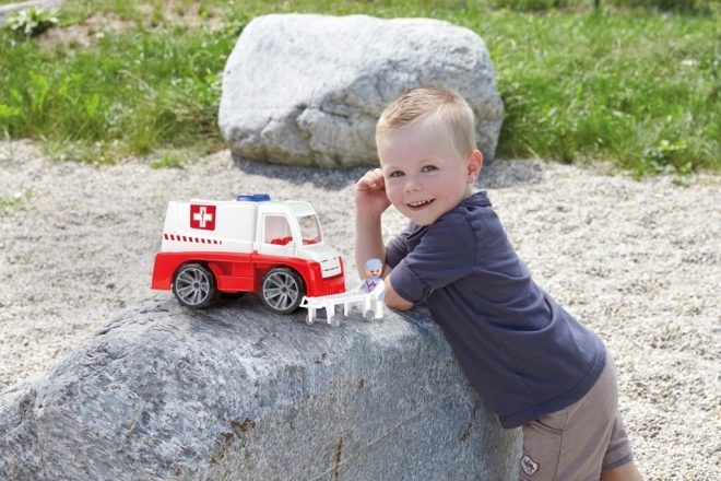 Solidna plastikowa karetka LENA TRUXX dla małych ratowników oferuje mechaniczne działanie, otwierane drzwi i uchylną kabinę. W zestawie jest figurka ratownika oraz nosze dla realistycznej zabawy. Długość 29 cm, odpowiednia od 2 lat, idealna na piasek i do domu, bez baterii.