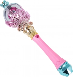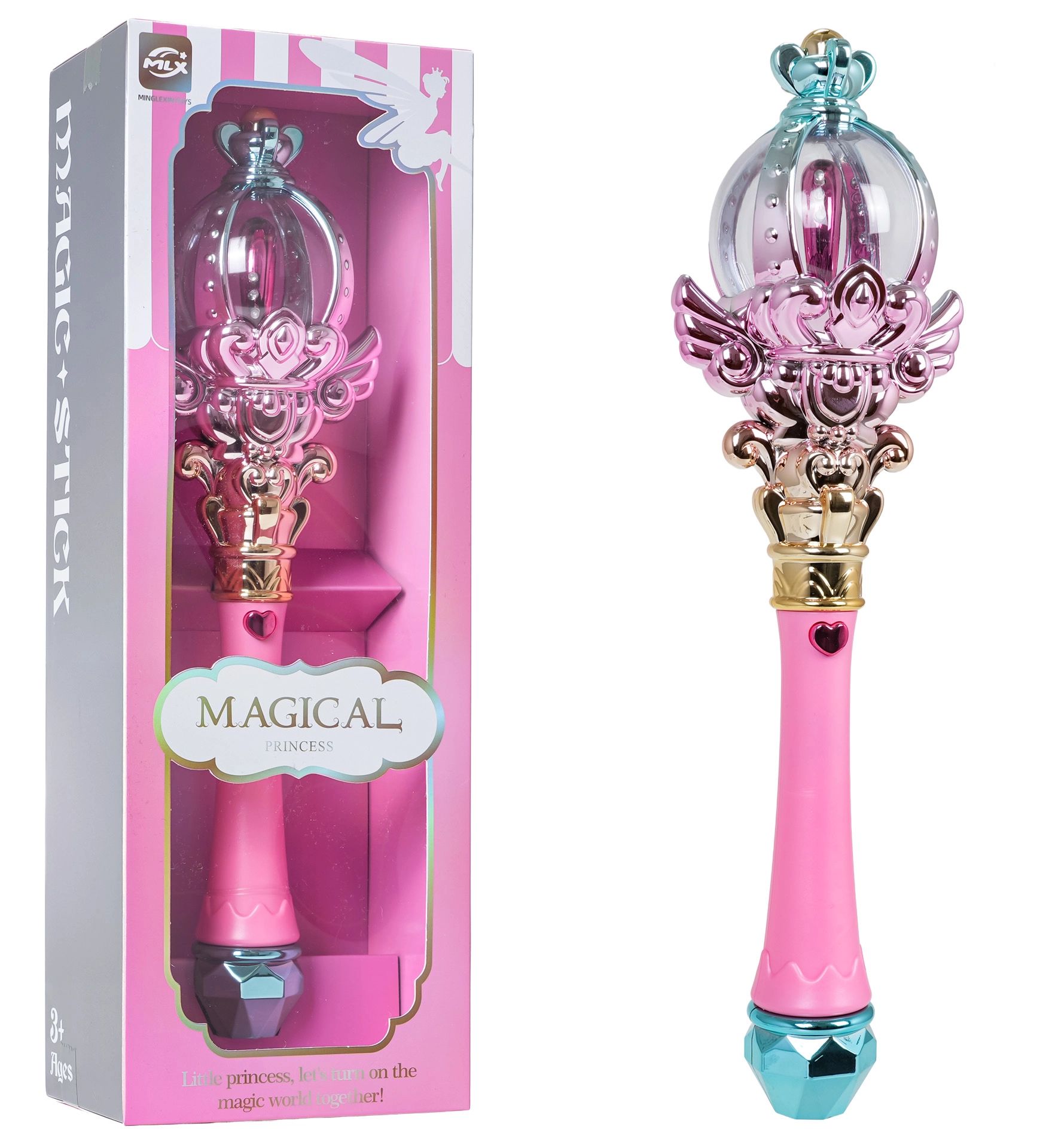 Ta interaktywna magiczna różdżka zamieni każdą zabawę w bajkową przygodę. Półprzezroczysta kopuła i kryształowe detale rozbłyskują zielenią, błękitem i czerwienią, a przycisk na rękojeści uruchamia magiczne dźwięki i melodie. Idealna do zabaw w księżniczki, wróżki i czarodziejów.