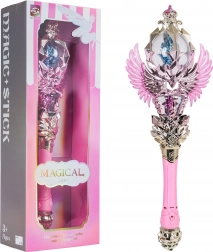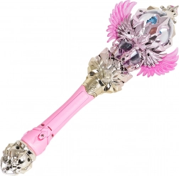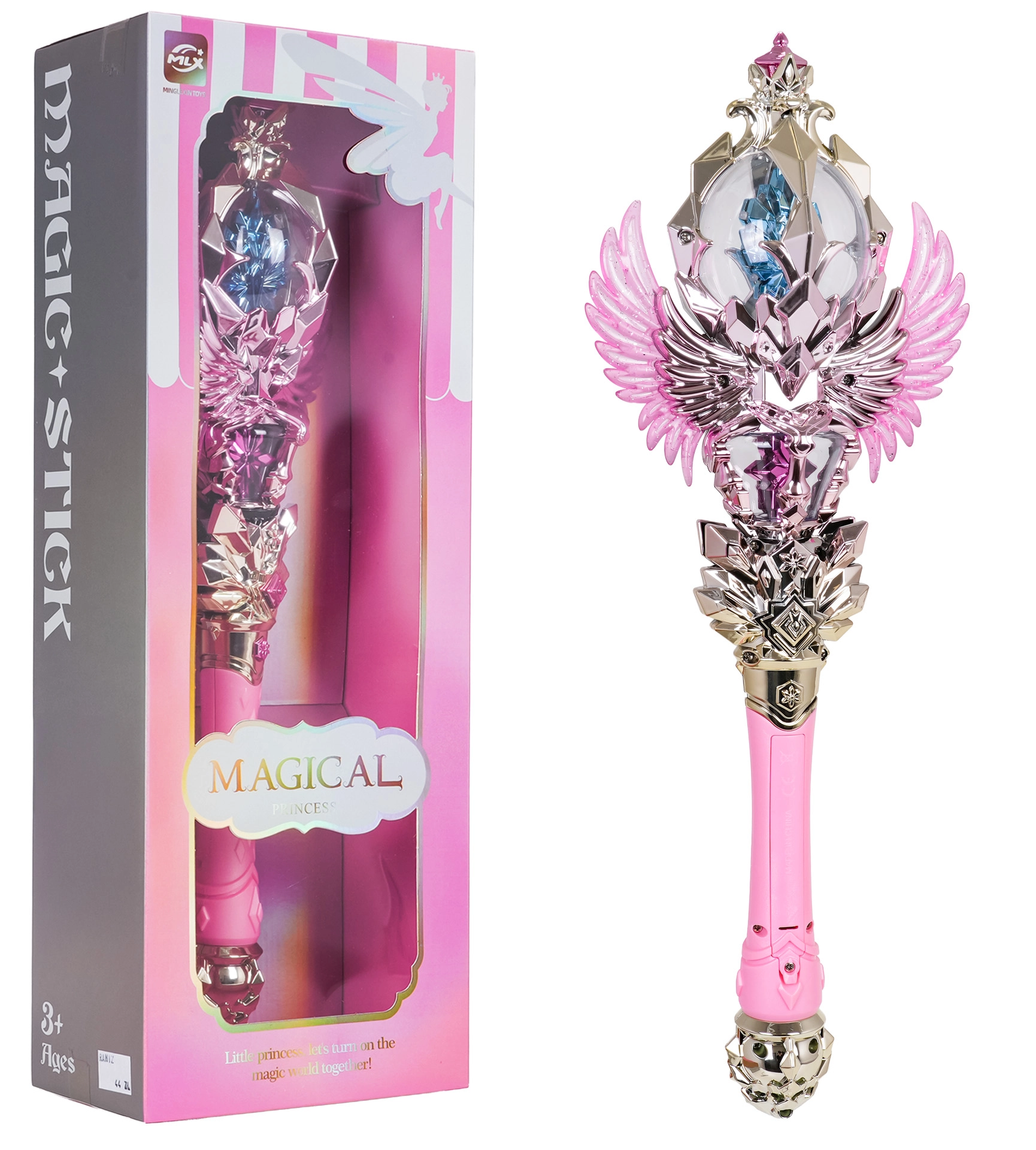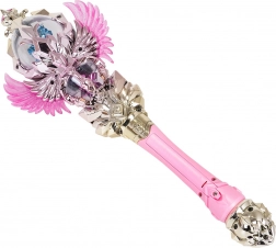 Ta interaktywna magiczna różdżka zamieni zabawę w księżniczki lub czarodziejów w niezapomnianą przygodę. Dzięki kolorowym diodom LED (zielona, niebieska, czerwona) i obracającym się gwiazdeczkom tworzy efektowny świetlny pokaz, który uzupełniają wesołe melodie i magiczne dźwięki. Ergonomiczne wykonanie i żywe kolory zachęcają do częstego używania.