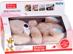 Uspokój swoje dziecko miękką wydrą, która delikatnie „oddycha”, świeci na brzuszku i odtwarza melodie, bicie serca oraz biały szum. Ta interaktywna pluszowa zabawka tworzy poczucie bezpieczeństwa i pomaga dzieciom szybciej zasnąć dzięki rytmicznemu ruchowi brzuszka, stłumionemu światłu i nawet 8 kojącym dźwiękom. Mechanizm łatwo wyjąć, a plusz można prać w pralce.