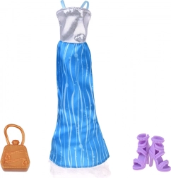 Wieczorowa kreacja jest inspirowana taflą wody – srebrzysty gorset przypomina refleksy słońca, a długa niebieska spódnica z falistym wzorem przywodzi na myśl morskie fale. Styl uzupełniają czółenka na obcasie, naszyjnik i torebka, aby księżniczka lub syrenka była zawsze doskonale przygotowana na bal i podmorskie przygody.
