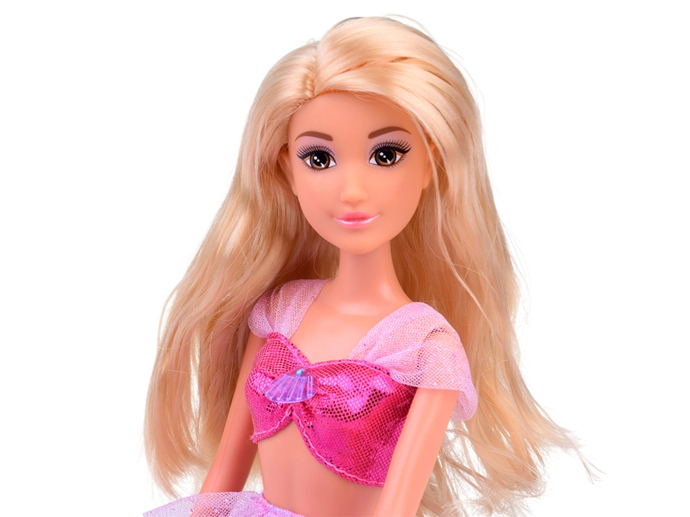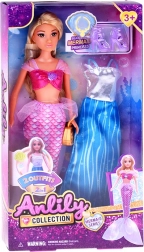Lalka Anlily zachwyca delikatnym uśmiechem, dużymi brązowymi oczami i długimi blond włosami, stworzonymi do czesania i tworzenia fryzur. W opakowaniu znajdziesz wszystko do dwóch stylizacji: wieczorową suknię księżniczki oraz syreni strój z błyszczącym crop topem i materiałowym ogonem z półprzezroczystymi płetwami.