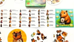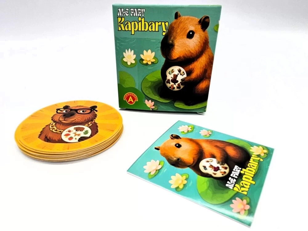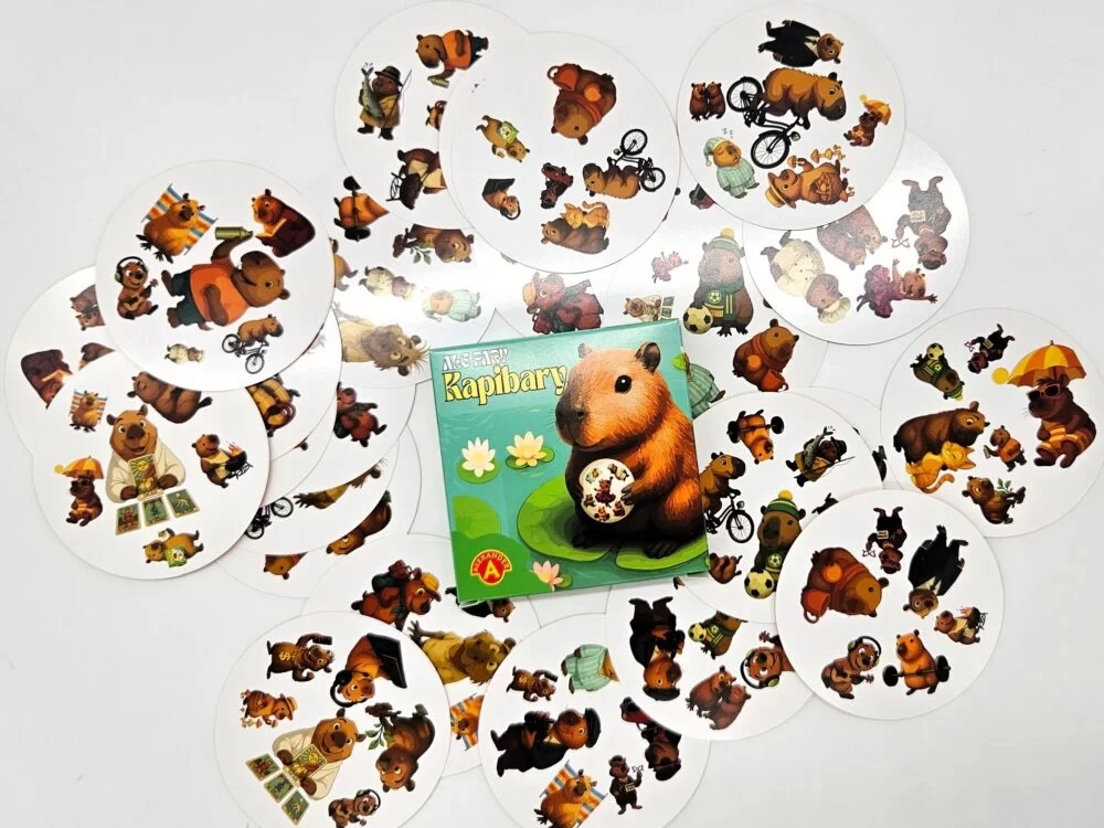 Ta dynamiczna gra oferuje 31 kolorowych, okrągłych kart z kapibarami w różnych rolach – od baletnicy i muzykantki, przez businesswoman, aż po ogrodniczkę czy sportsmenkę. Każde dwie karty mają zawsze dokładnie jeden wspólny symbol, który może mieć inny rozmiar lub położenie. Kto rozpozna go jako pierwszy, zdobywa punkt.