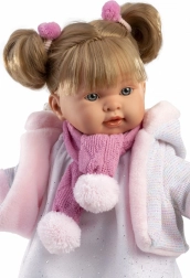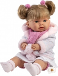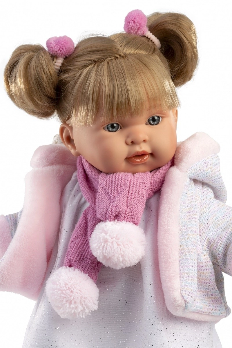 Lalka LLORENS Alexandra jest ręcznie wykonana w Hiszpanii z dbałością o każdy detal. Ma miękkie bawełniane ciałko przyjemne do przytulania oraz winylowe ręce, nogi i główkę z delikatnym cieniowaniem, rzęsami i wyrazistymi oczami. Po wyjęciu smoczka lalka wydaje dźwięki płaczu, co wspiera empatyczną i naśladowczą zabawę.