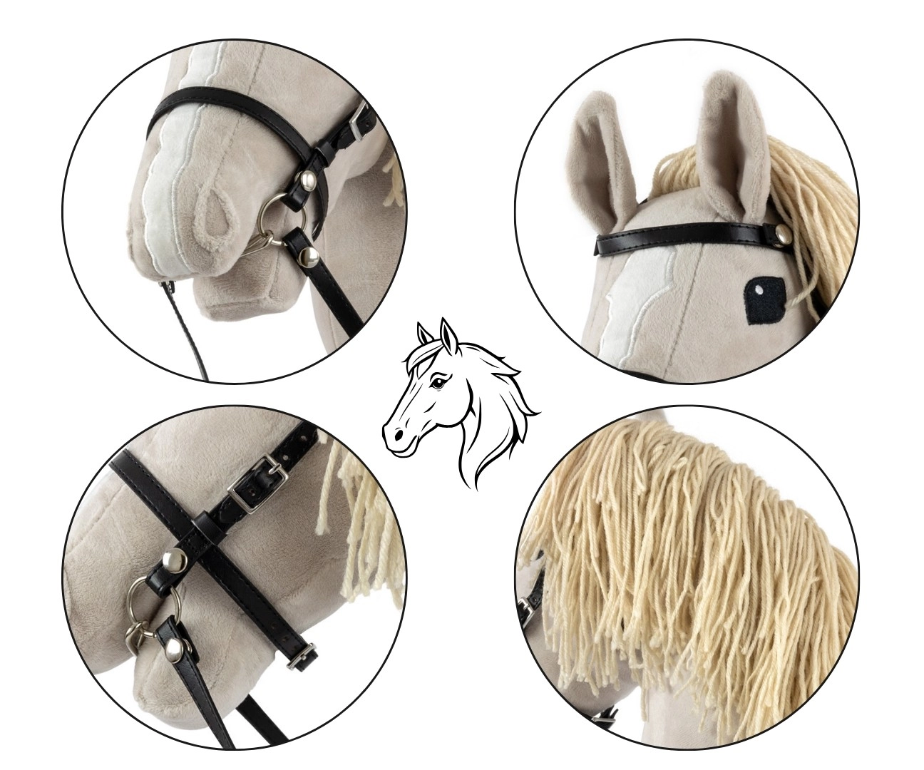 Długie lejce i uzda pomagają dzieciom prowadzić konika i wzmacniają wrażenie prawdziwej jazdy.
