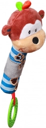 Delikatny piszczący dźwięk motywuje malucha do chwytania i potrząsania zabawką, rozwijając słuch oraz koordynację ręka–oko.