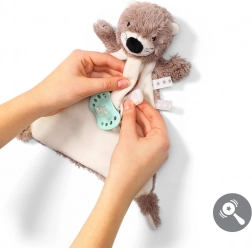Miękka przytulanka z uroczą wydrą Maggie łączy funkcję pluszowej zabawki, kocyka i uchwytu na smoczek. Dzięki tasiemkom do zabawy, zintegrowanej grzechotce oraz praktycznej pętelce na smoczek zapewnia maluszkowi ukojenie, stymulację sensoryczną i poczucie bezpieczeństwa w domu i w podróży.